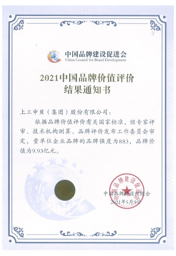 中国品牌价值评价结果通知书(品牌强度883,品牌价值9.93亿元)