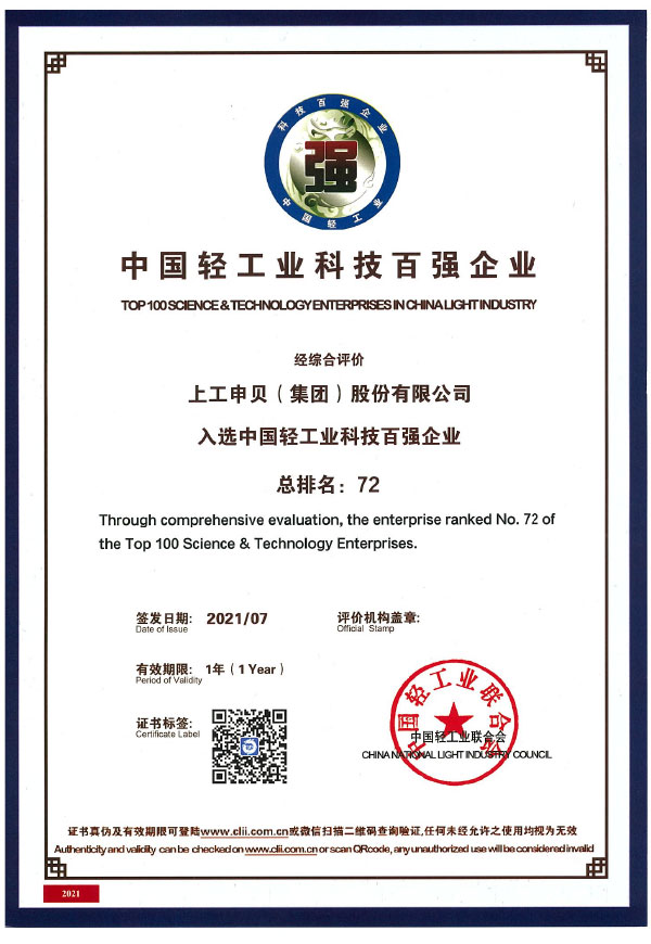 j9真人第一品牌(集团)股份有限公司入选中国轻工业科技百强企业(第72名)