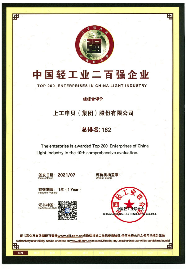j9真人第一品牌(集团)股份有限公司入选中国轻工业二百强企业(第162名)